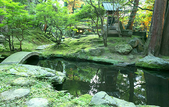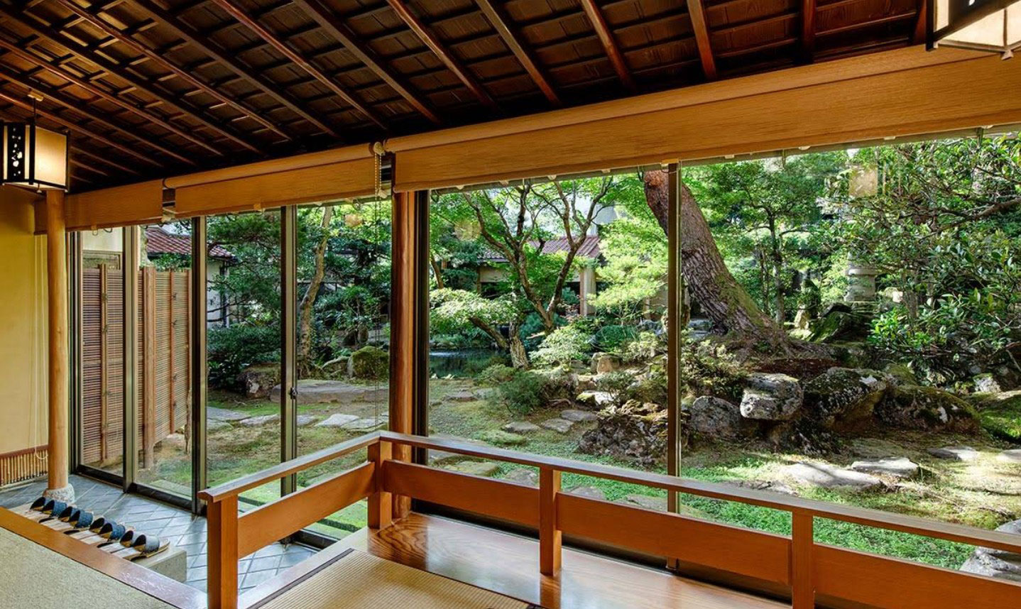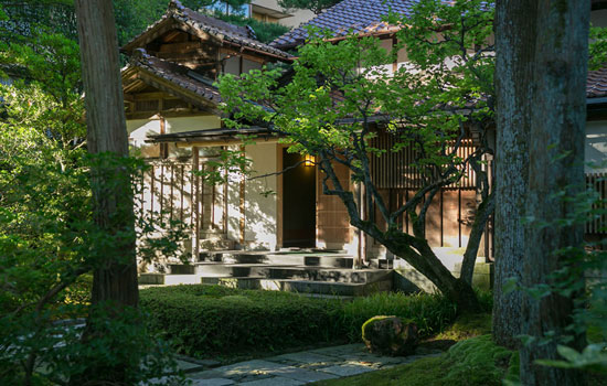 Houshi Ryokan is arranged around a Japanese garden of moss, red pines and centuries-old cedars — a space that Toemon Sano, a sixteenth-generation master gardener, has harmonised with the ancient forest surrounding the hotel. Four wings, connected around this garden, are named after the four seasons: Spring, Summer, Autumn and Winter. Each offers a different perspective of the garden; guests can observe the cherry blossoms, the lush greenery of summer, the autumn colours or the winter whiteness from the hot springs.