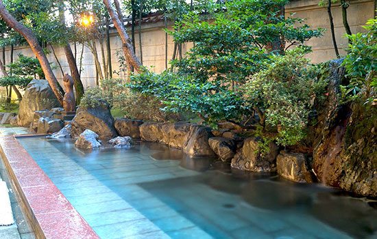 Beyond its traditional architecture, the true highlight of Houshi Ryokan is the hot spring water of Awazu Onsen. These waters emerge at a constant temperature, and their properties have been praised for centuries. The main baths, named Houmei and Enmei, overlook the garden and allow visitors to observe how the colour of submerged stones changes due to the minerals dissolved in the water. For those seeking greater privacy, two private baths — Taichō no Yu and Garyō no Yu — can be reserved, their names honouring the legendary founders.