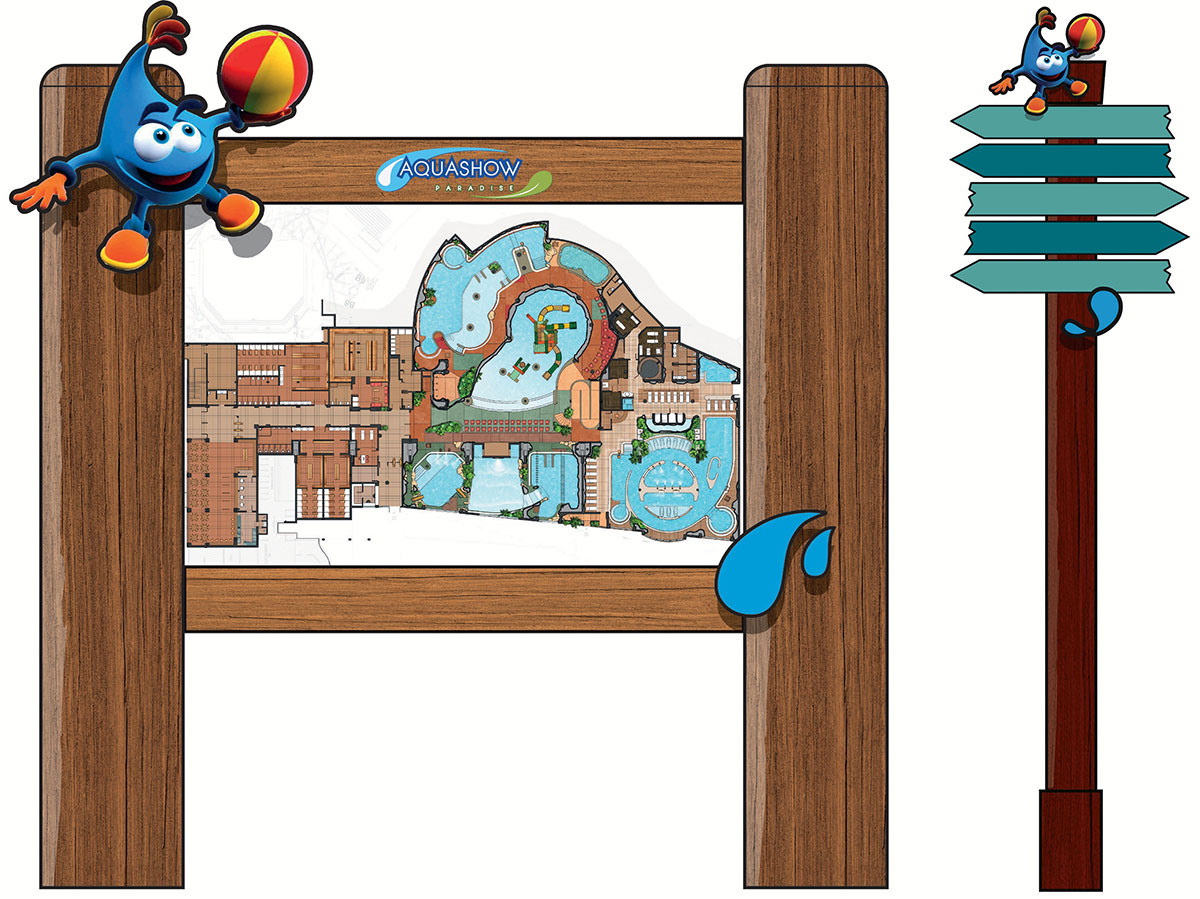 In architecture for leisure and tourism, signage is a kind of Ariadne’s thread within the labyrinth of water and concrete that is a water park — a slender guide-rope that transforms disorientation into orientation and dispels the fear of getting lost. In the space between the visitor’s desire and their fulfilment, a mental process unfolds in four stages: orientation, decision, navigation and recognition. Amid the reflections and splashes of a water park, design must provide certainty about the correct path.