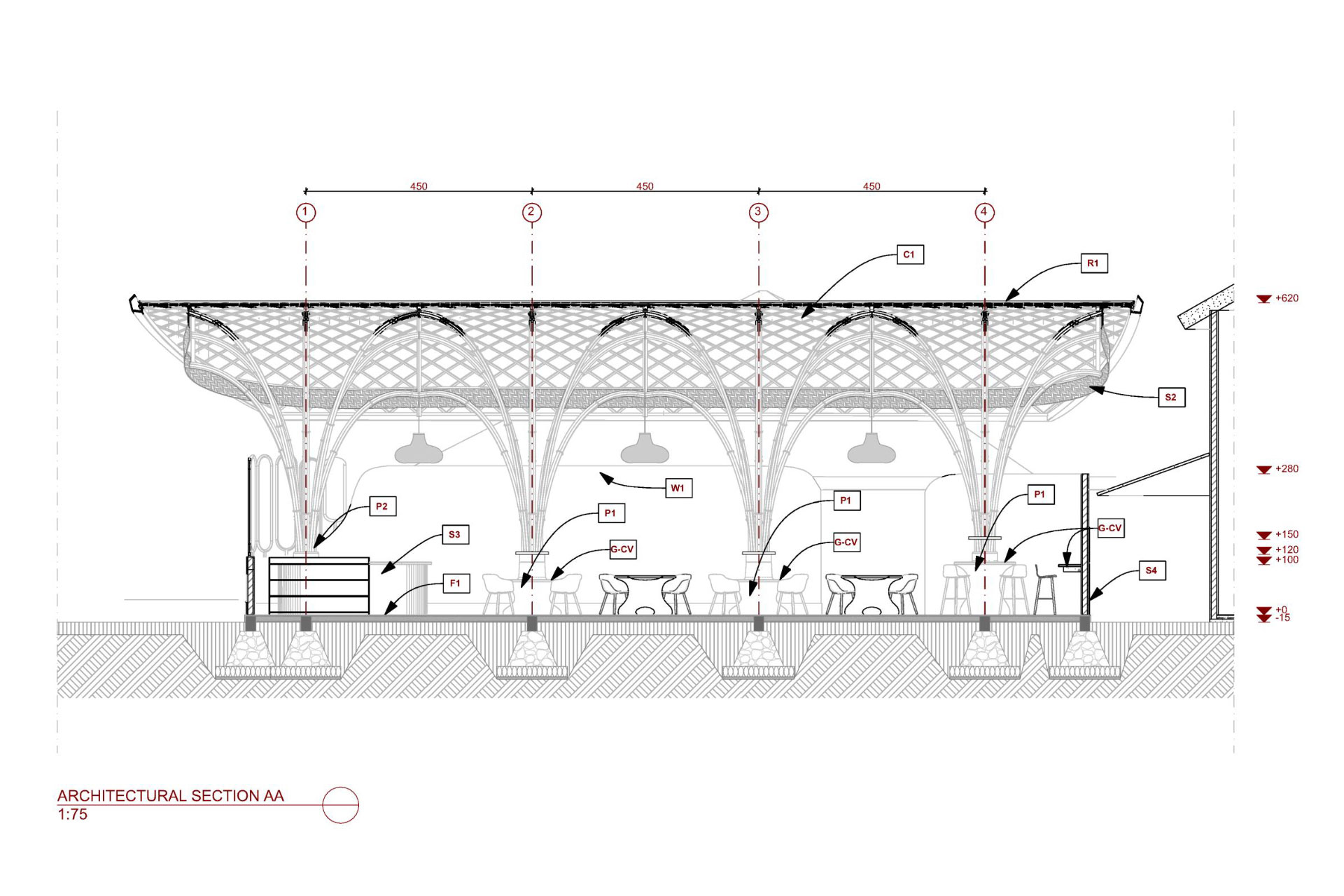 What Mizzi began as an educational option for his children turned into a two-year journey to complete the architectural project for The Living Bridge Co-Learning Centre. In a process of “shared authorship”, the construction of the Living Bridge was carried out in parallel with the school calendar, so that students aged between 15 and 18 participated in every stage of its development, from design to final construction. The result is a structure made up of more than 300 pieces of bamboo sourced from the land, treated with advanced heat-bending techniques and assembled.